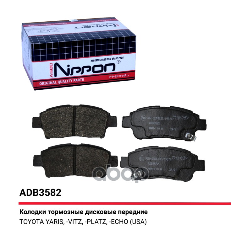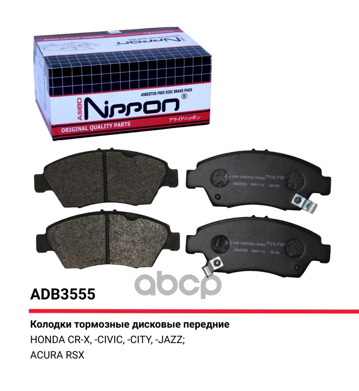 Колодки тормозные Honda Jazz 02-, Fit 01-, Civic 91-97 передние Allied Nippon ADB 3556 GDB1164;GDB3176;GDB3212;36784;BPHO1904;AN377WK;ADB3556;13046059432;510155;ADH24253;BBP1467;0986494299;0986461126;P28024;LP810;0301EUF;BP43218;TAR777;FSL777;FDB777;61116