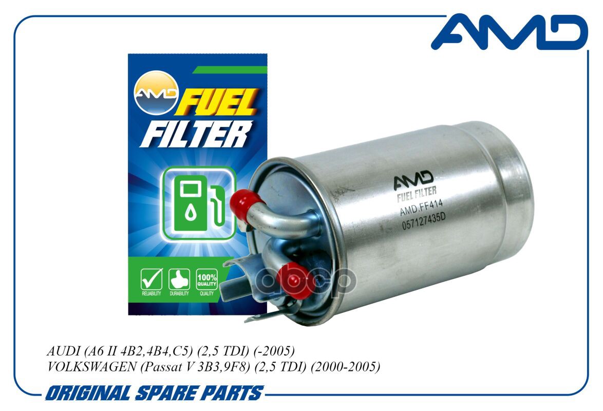 Фильтр топливный AUDI A4 8D2, B5, 1,8/2,4/2,6/2,7/2,8, 1994-2000, A6 II 4B2,4B4,C5, 1,8/2,4/2,6/2,7/2,8/3,0/3,7, 1997-2005, VOLKSWAGEN Passat V 3B3,9F8, 2,0/2,3/2,8, 2000-2005 AMDFF411