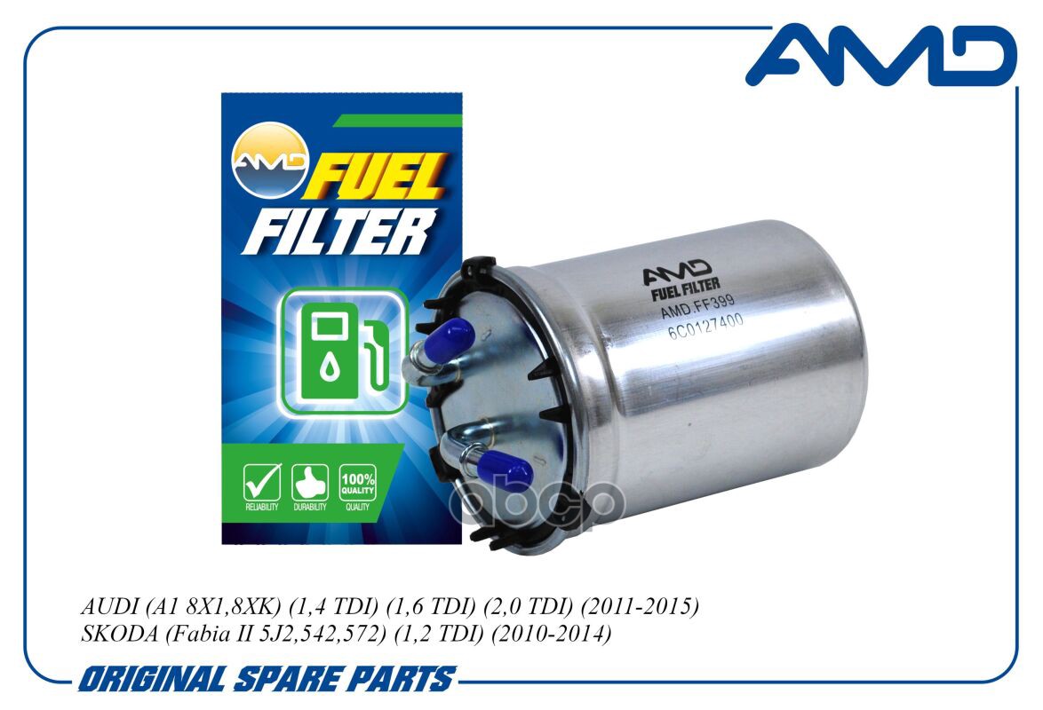 Фильтр топливный AUDI A1 8X1,8XK, 1,4 TDI, 1,6 TDI, 2,0 TDI, 2011-2015, SKODA Fabia II 5J2,542,572, 1,2 TDI, 2010-2014 AMDFF399