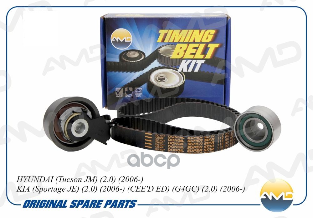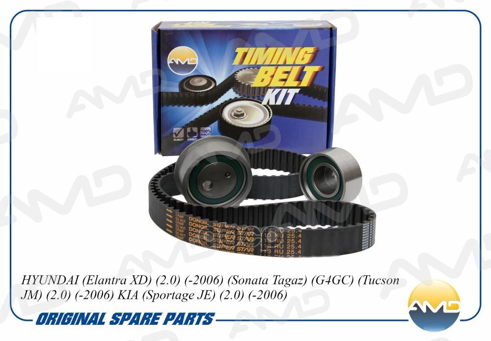 Комплект ГРМ Hyundai Accent (ТагАЗ) 00-, Getz 1.4-1.6 02-09, Elantra (XD) 00-06; Kia Rio 05-11 AMD AMD.KITBR6 KP15479XS;2431226000;2431226001;2431226050;2441022020;2441026000;2481026010;2481026020;2510026016;2510026550;2510026900;2510026901;2510026902;S24