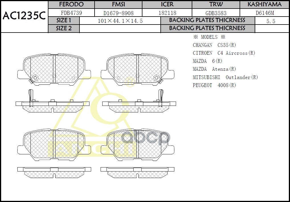 Тормозные колодки ANCHI AC1347C NISSAN Terrano WD21, Mistral R20, Caravan E24, Atlas F23 FRONT