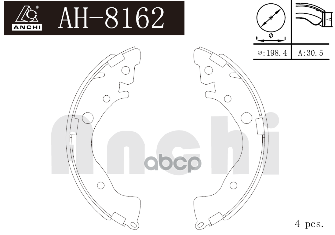 Колодки тормозные задние TY COROLLA ##E12# , ALLION #ZT24# , #ZT26# `00-17 барабан. (1 компл.) Anchi - Китай