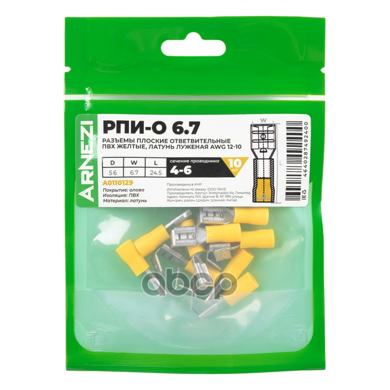 Купить запчасть A0110129 Разъемы плоские ответвительные РПИ-О 6.3 4-6 10 шт ПВХ желтые, латунь луженая AWG12-10, , Max с доставкой по России.