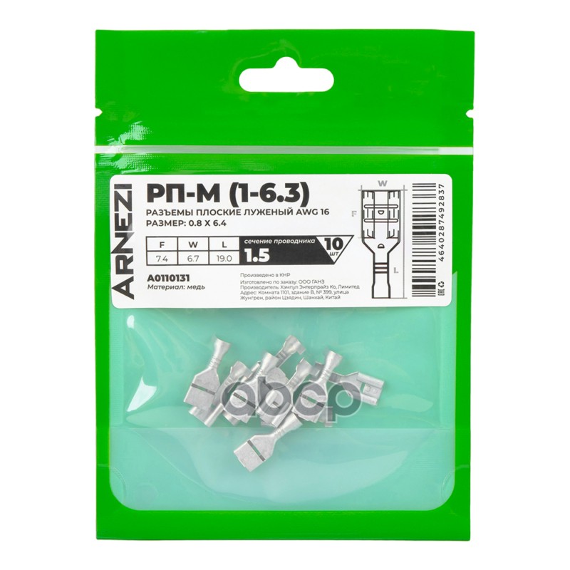 Купить запчасть A0110131 Разъемы плоские РП-М (1-6.3)(10шт) луженый, , Max Вт ARNEZI A0110131 с доставкой по России.