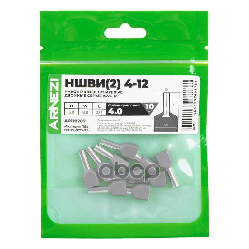 Купить запчасть A0110207 Наконечники штыревые двойные НШВИ2 4-12 10шт, , Max Вт ARNEZI A0110207 с доставкой по России.