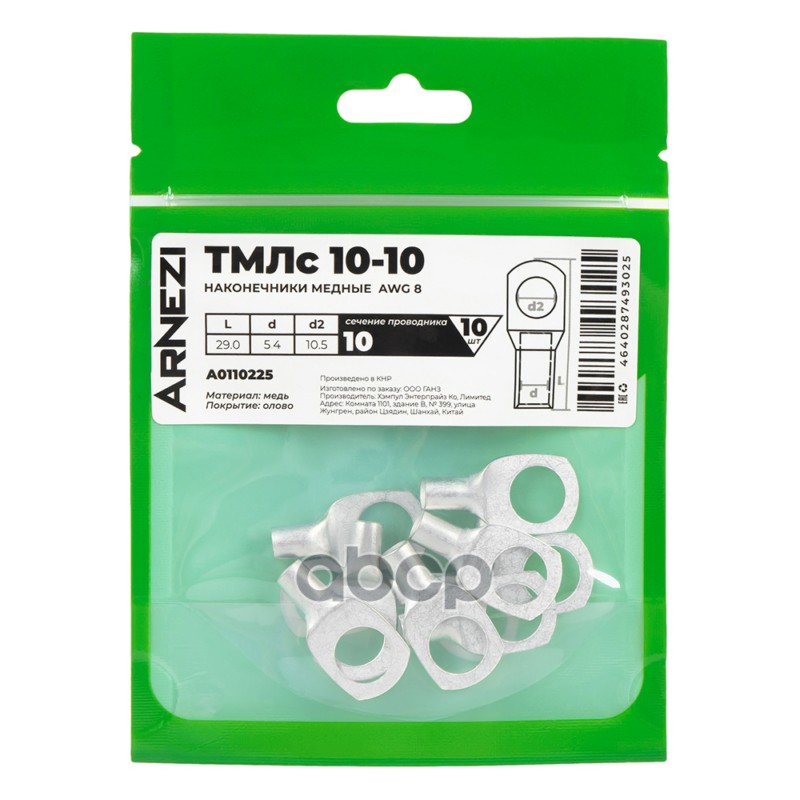 Купить запчасть A0110225 Наконечники медные ТМЛс 10-10 10шт, , Max Вт ARNEZI A0110225 с доставкой по России.