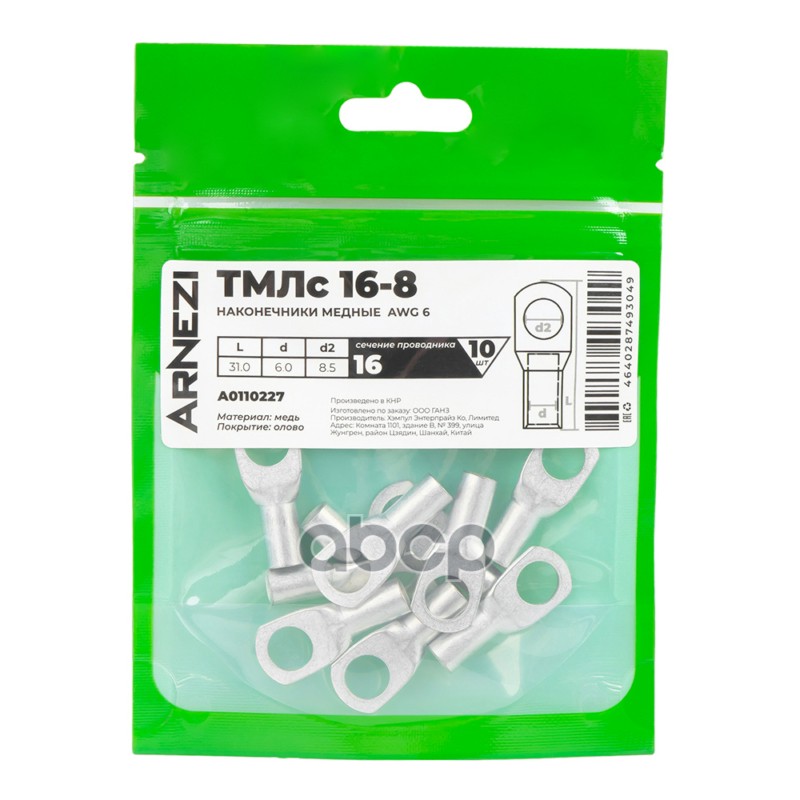 Купить запчасть A0110227 Наконечники медные ТМЛс 16-8 10шт, , Max Вт ARNEZI A0110227 с доставкой по России.