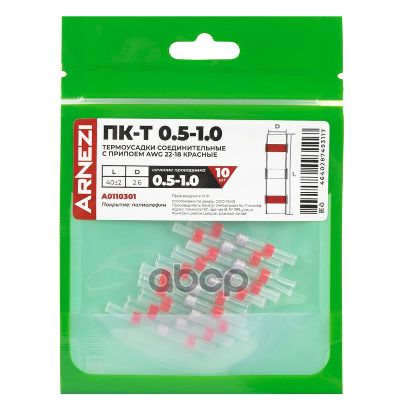 Купить запчасть A0110301 Термоусадки соединительные с припоем ПК-Т 0.5-1.5 L40 AWG22-18 10шт красные, , Max Вт ARNEZI A0 с доставкой по России.