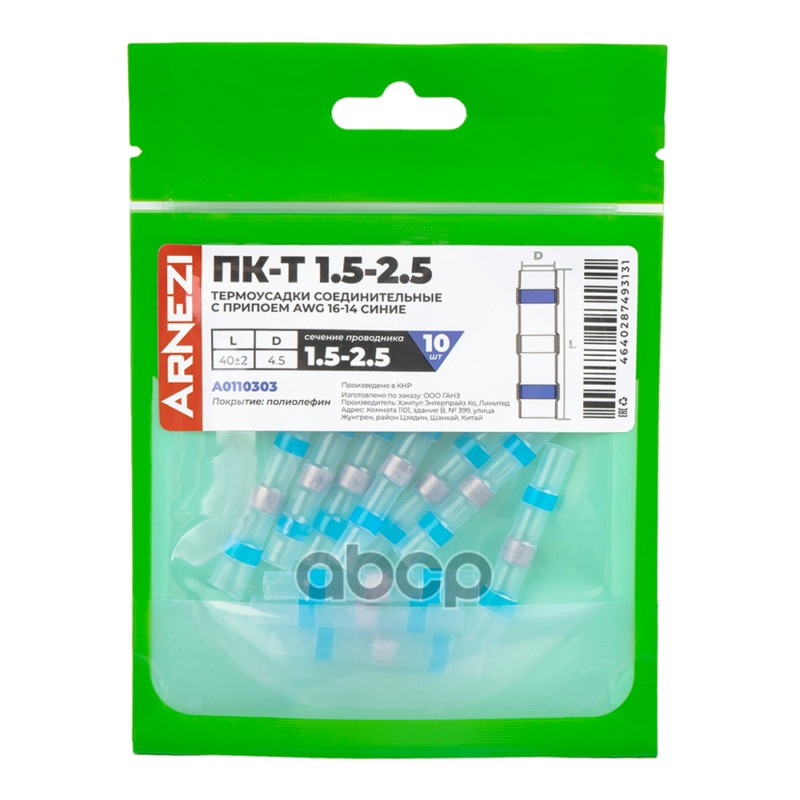 Купить запчасть A0110303 Термоусадки соединительные с припоем ПК-Т 1.5-2.5 L40 AWG16-14 10шт синие, , Max Вт ARNEZI A011 с доставкой по России.