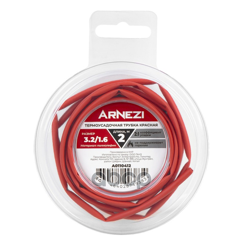 Купить запчасть A0110412 Термоусадочная трубка 2м ТСТ D-3.21.6 красная, , Max Вт ARNEZI A0110412 с доставкой по России.