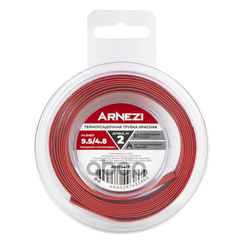 Купить запчасть A0110415 Термоусадочная трубка 2м ТСТ D-9.54.8 красная, , Max Вт ARNEZI A0110415 с доставкой по России.