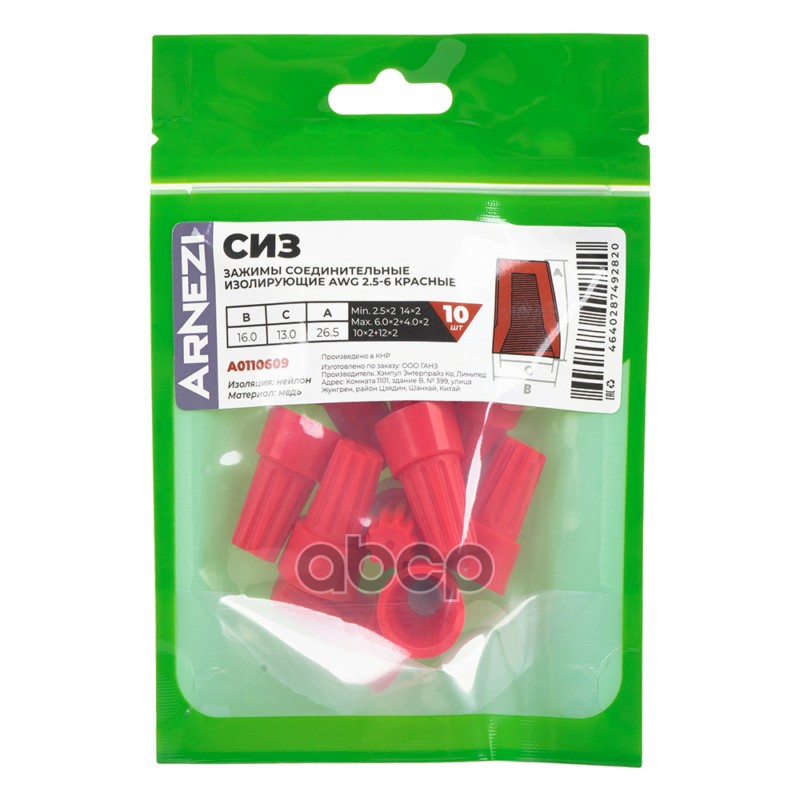 Купить запчасть A0110609 Зажимы соединительные изолирующие СИЗ 10шт AWG2.5-6 красные, , Max Вт ARNEZI A0110609 с доставкой по России.