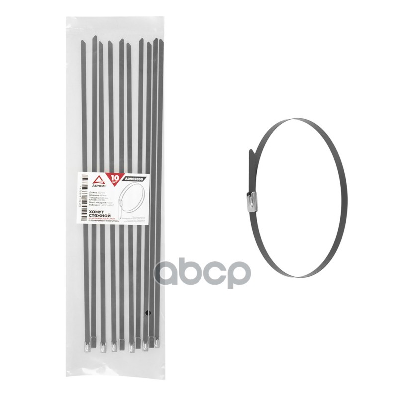 Купить запчасть A0902830 Хомут стяжной из нержавеющей стали 4.6x300мм 10шт с полимерным покрытием ARNEZI A0902830 с доставкой по России.