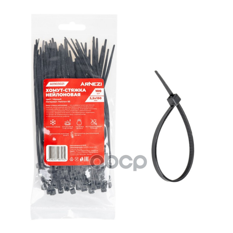 Купить запчасть A0903021 Хомут-стяжка нейлоновая 3.5x150 мм, черные 100 шт Arnezi A0903021 с доставкой по России.