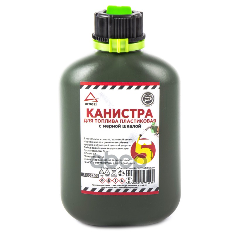 Наименование: Канистра 5л для топлива пластиковая, с мерной шкалой и лейкой ARNEZI A1006305