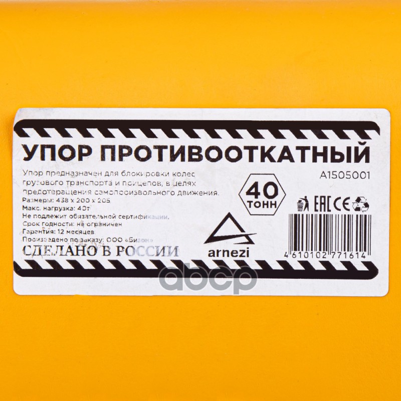 Наименование: Упор (башмак) противооткатный для грузового транспорта (438*200*205) желтый ARNEZI A1505001 Упор (башмак) противооткатный для грузового транспорта (438*200*205) желтый ARNEZI A1505001