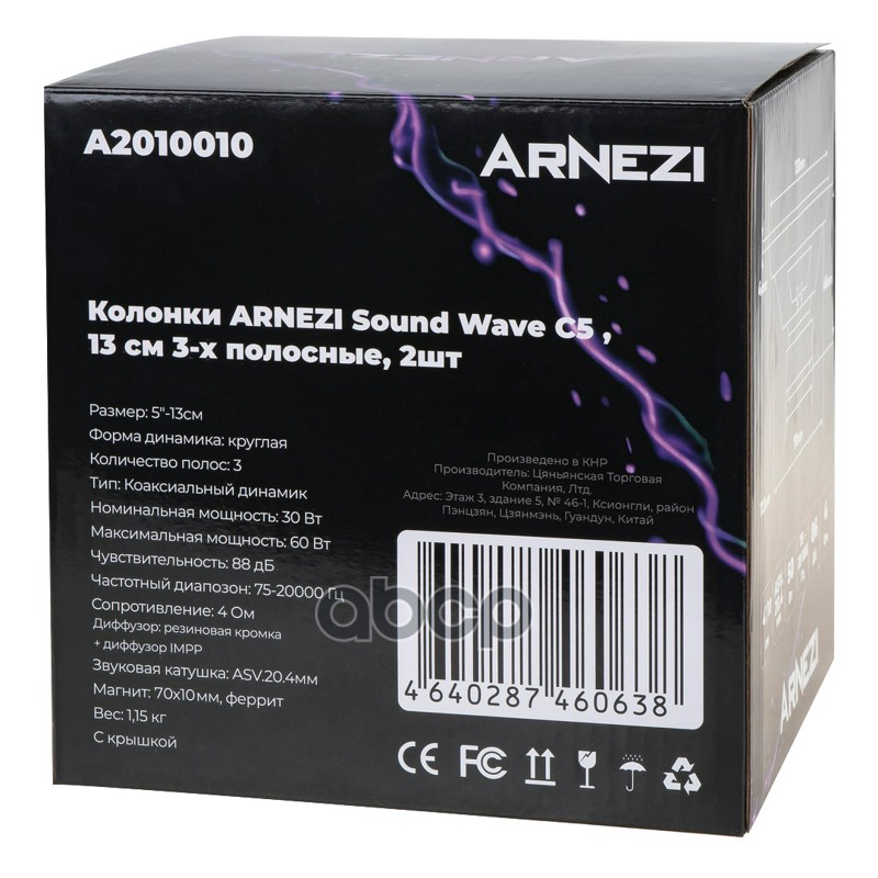 Купить запчасть A2010010 Колонки ARNEZI Crystal Sound С5, 13 см 3-х полосные, 2шт, , Max Вт ARNEZI A20100 с доставкой в Эль-Монте.