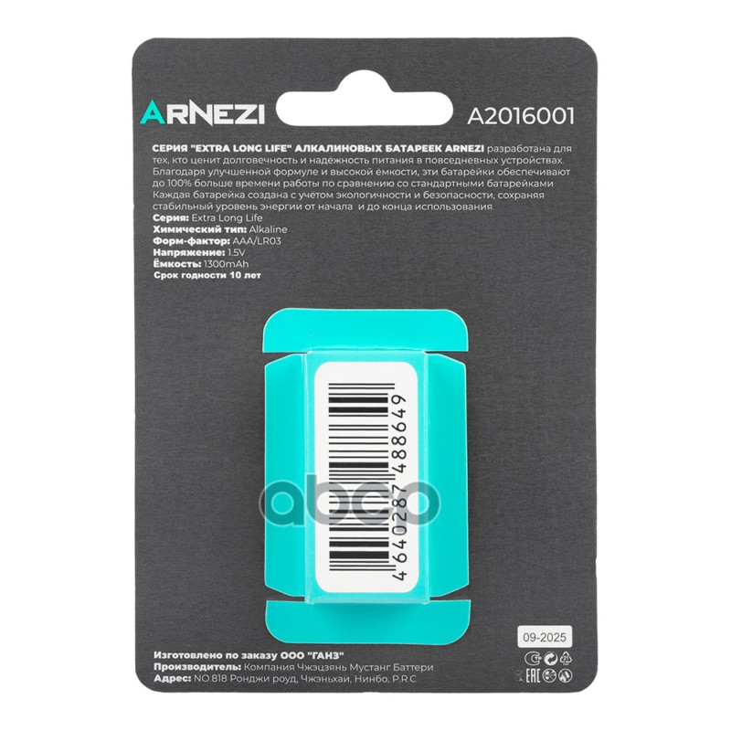 Купить запчасть A2016001 БАТАРЕЙКА АЛКАЛИНОВАЯ ARNEZI AAALR03 1300MAH EXTR с доставкой по России.