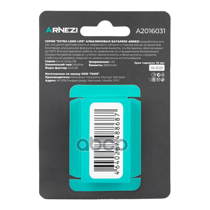Купить запчасть A2016031 БАТАРЕЙКА АЛКАЛИНОВАЯ ARNEZI AALR6 2800MAH EXTRA с доставкой по России.