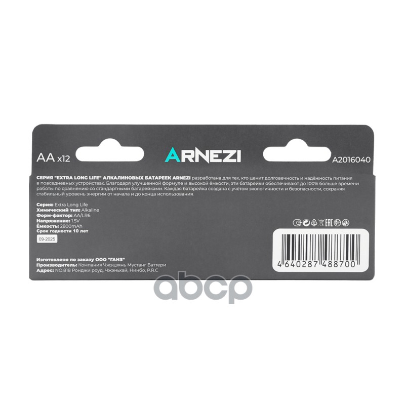 Купить запчасть A2016040 БАТАРЕЙКА АЛКАЛИНОВАЯ ARNEZI AALR6 2800MAH EXTRA с доставкой по России.