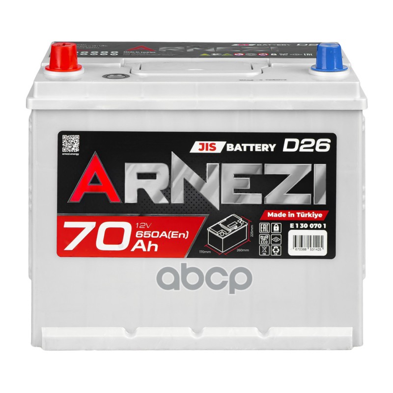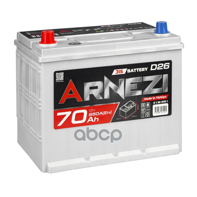 Купить запчасть E1300701 Аккумулятор ARNEZI JIS SMF 70 Ач прямой L 260x170x225 D26 EN 650 А с доставкой по России.