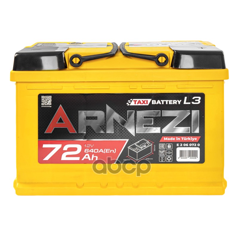 Наименование: Аккумулятор ARNEZI TAXI SMF 72 А/ч обратный R(+) 278x175x190 L3 EN 640 А