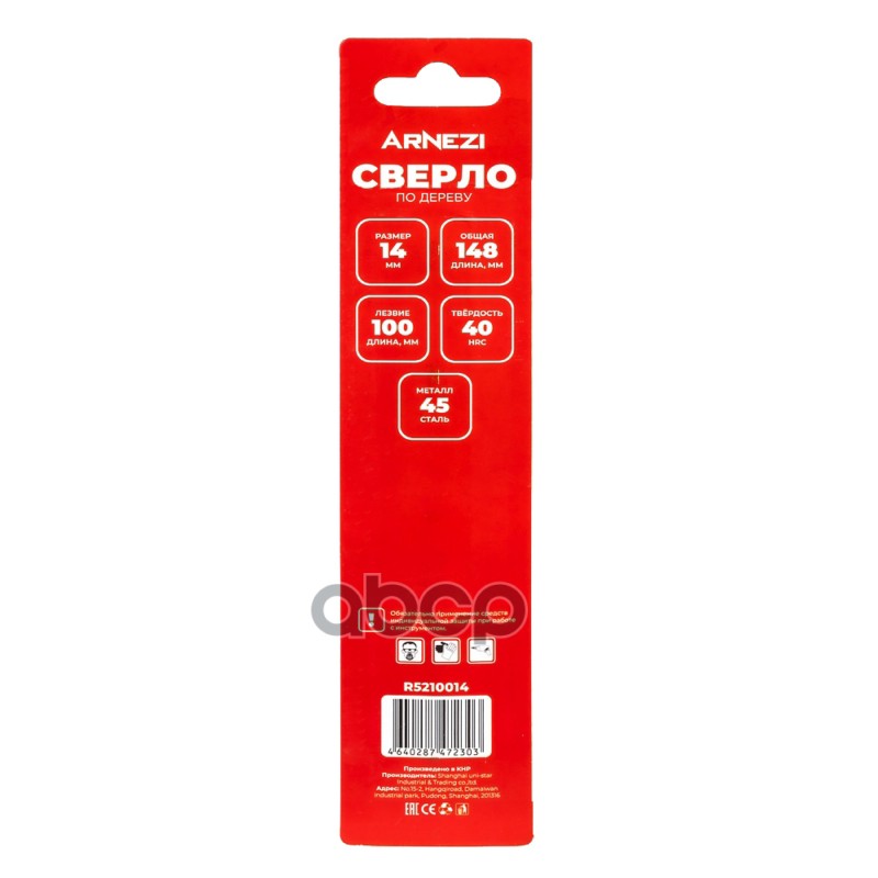 Наименование: Сверло по дереву, 14 мм, цилиндрический хвостовик Arnezi R5210014 Сверло по дереву, 14 мм, цилиндрический хвостовик Arnezi R5210014