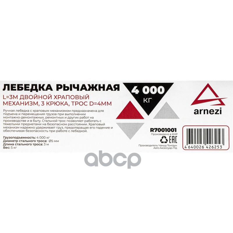 Купить запчасть R7001001 Лебедка рычажная 4т L=3м двойной хроповый механизм, 3 крюка, трос d=4мм Лебедка рычажная 4т L=3м двойной хроповый механизм, 3 крюка, трос d=4мм с доставкой в Эль-Монте.