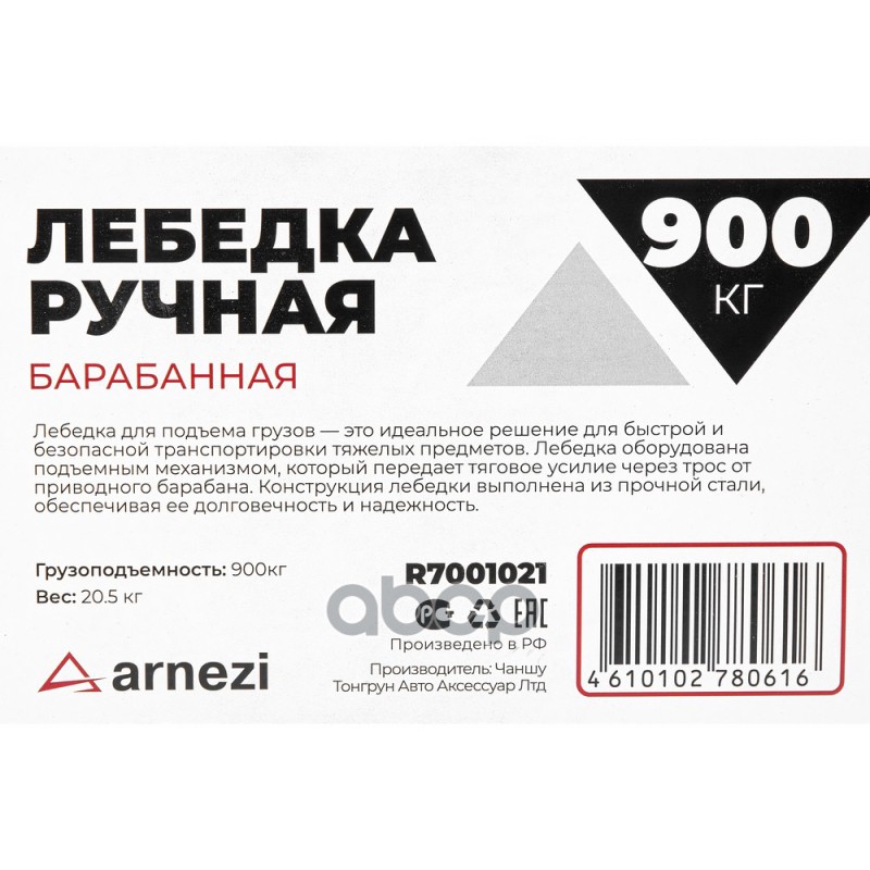 Наименование: Лебедка ручная барабанная 0,9т ARNEZI R7001021 Лебедка ручная барабанная 0,9т ARNEZI R7001021