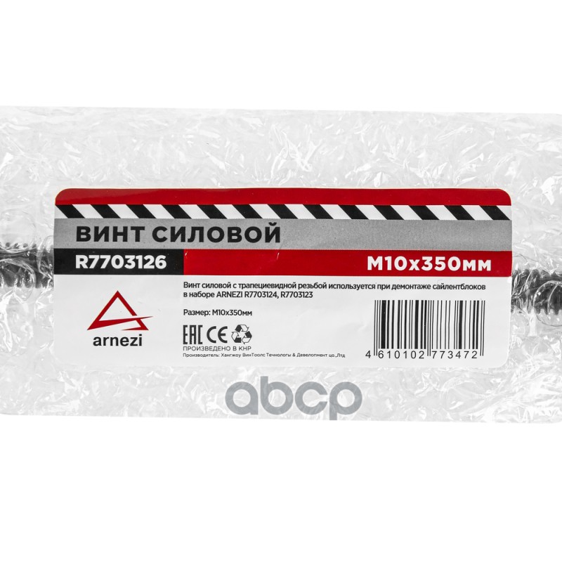 Наименование: Винт силовой М10х350мм для снятия сайлентблоков Arnezi R7703126 Винт силовой М10х350мм для снятия сайлентблоков Arnezi R7703126