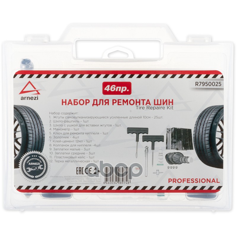 Набор для ремонта бескамерных шин профессиональный 8 предметов ARNEZI R7950021 Набор для ремонта бескамерных шин профессиональный 8 предметов ARNEZI R7950021
