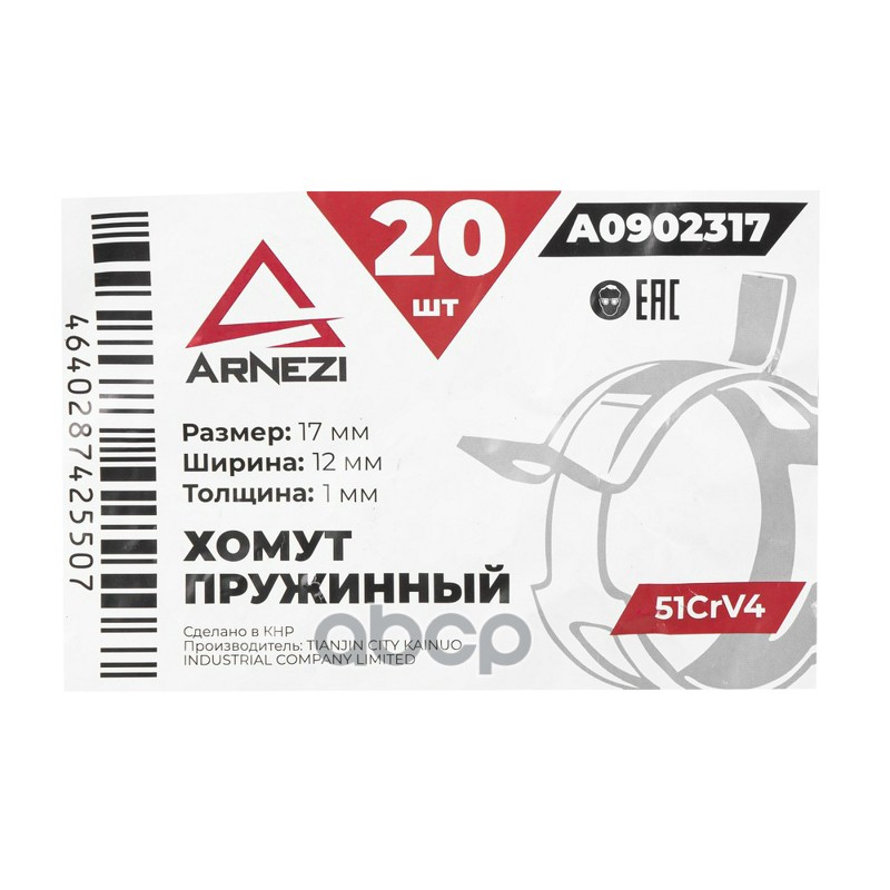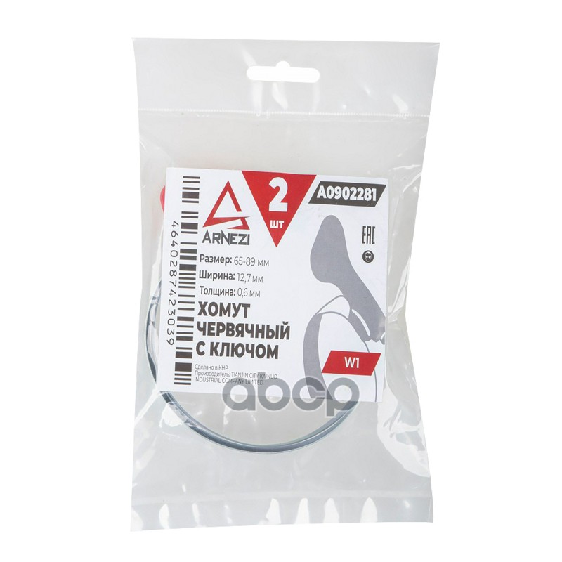 Комплект хомутов червячных с ключом 65х89 / 9-0,6 W1 2шт ARNEZI A0902281 Комплект хомутов червячных с ключом 65х89 / 9-0,6 W1 2шт ARNEZI A0902281