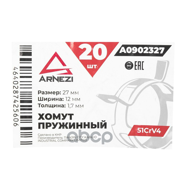 Хомут пружинный 27/12-1.7 51CrV4 патрубков и шлангов Хомут пружинный 27/12-1.7 51CrV4 патрубков и шлангов