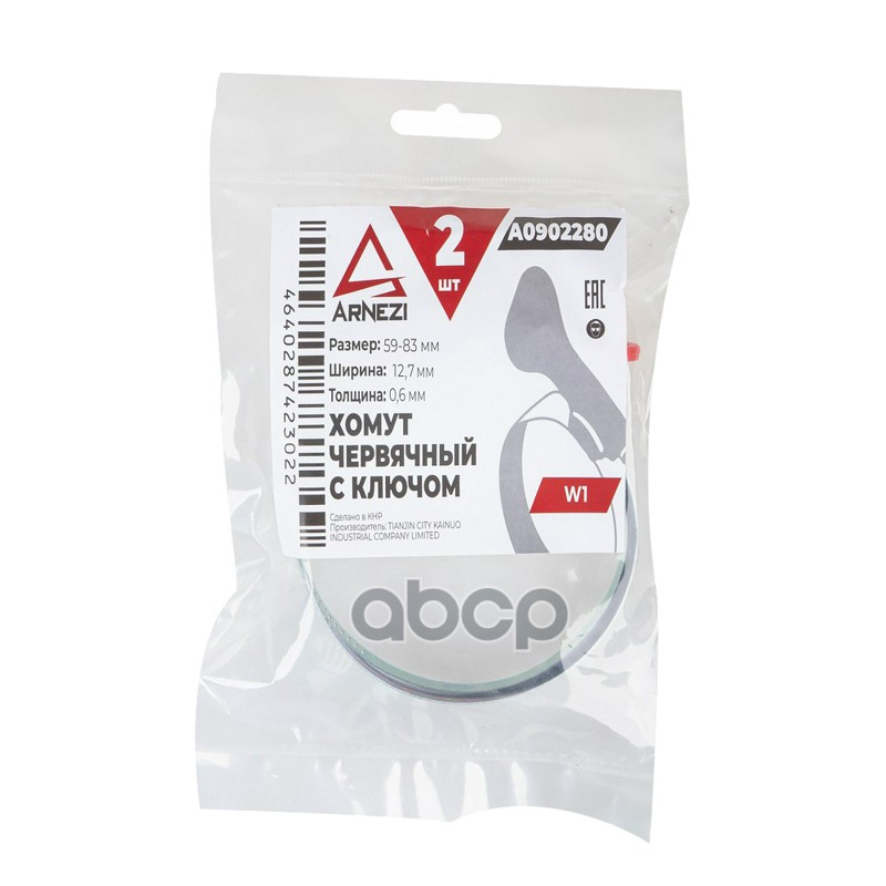 Комплект хомутов червячных с ключом 59х83 / 9-0,6 W1 2шт ARNEZI A0902280 Комплект хомутов червячных с ключом 59х83 / 9-0,6 W1 2шт ARNEZI A0902280