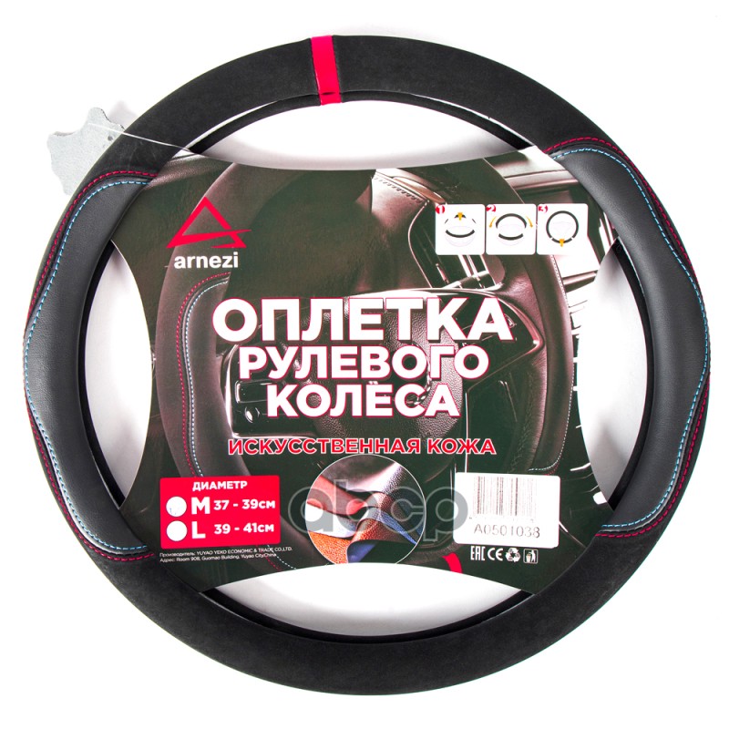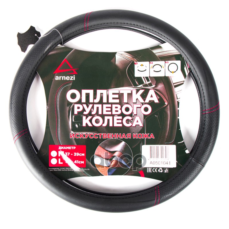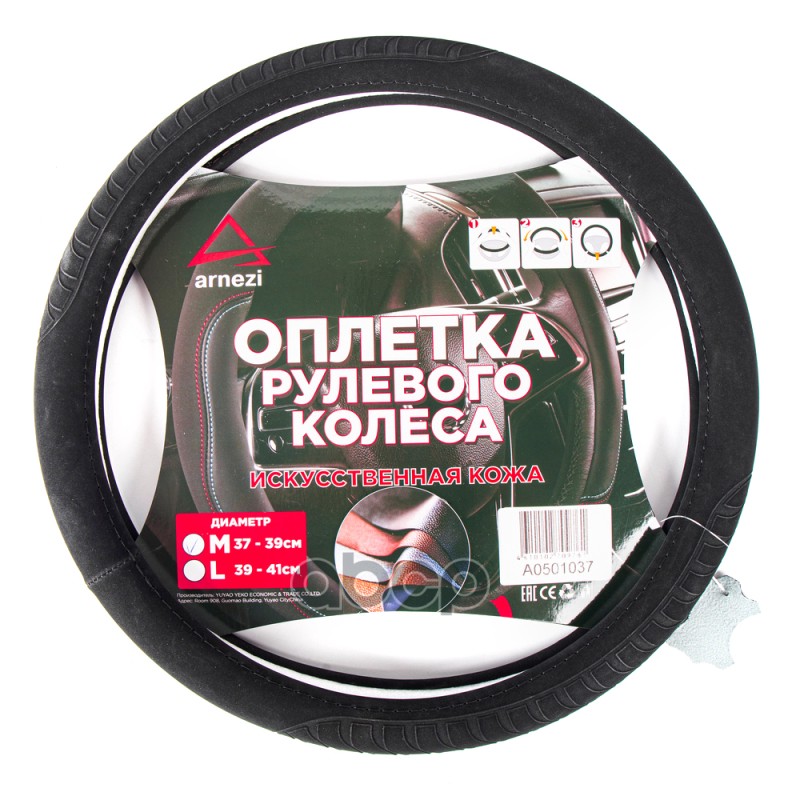 Оплетка на руль (M 38 см , иск. кожа PU, Софт тач) черная с тиснением ARNEZI A0501039 Оплетка на руль (M 38 см , иск. кожа PU, Софт тач) черная с тиснением ARNEZI A0501039