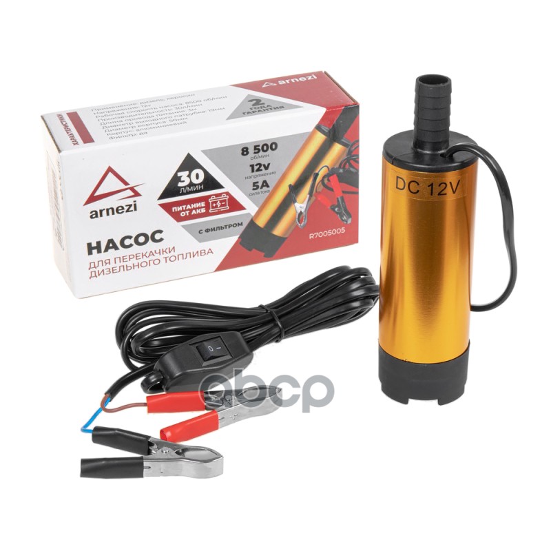Насос погружной для перекачки дизтоплива 30л/мин 5А 12В с фильтром ARNEZI R7005005 Насос погружной для перекачки дизтоплива 30л/мин 5А 12В с фильтром ARNEZI R7005005