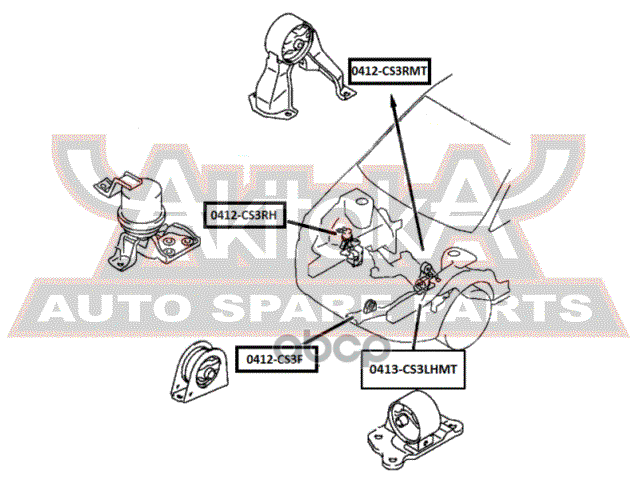 Бренд: ASVA, артикул: 0412CS3RMT, Подушка двигателя задняя mt MITSUBISHI Lancer. |