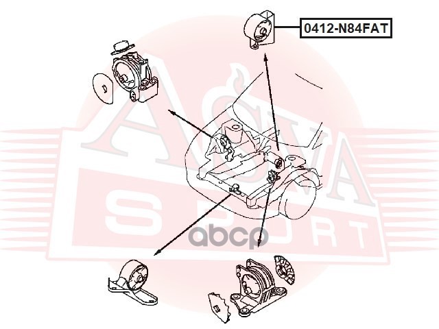 Бренд: ASVA, артикул: 0412N84FAT, Подушка двигателя передняя at MITSUBISHI CHARIOT/SPACE WAGON GRANDIS N84W/N94W 1997-2003. |