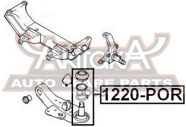 Бренд: ASVA, артикул: 1220POR, ОПОРА ШАРОВАЯ НИЖНЕГО РЫЧАГА. |