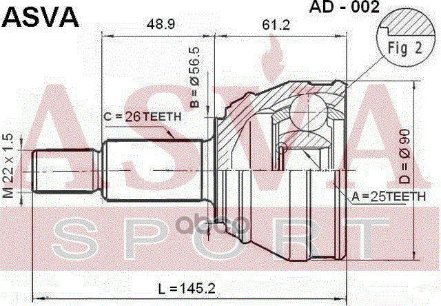 Купить запчасть AD002 ШРУС НАРУЖНЫЙ 25x56.5x26 с доставкой в Эль-Монте.