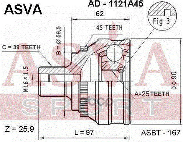 Купить запчасть AD1121A45 ШРУС НАРУЖНЫЙ 25x60x38 с доставкой в Эль-Монте.