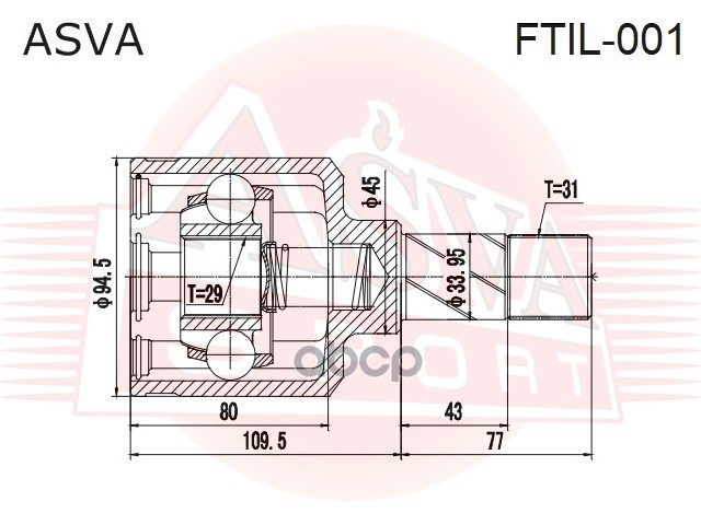 Купить запчасть FTIL001 ШРУС ВНУТРЕННИЙ ЛЕВЫЙ 29X45X31 с доставкой в Эль-Монте.