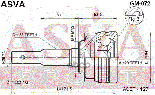 Наименование: Шрус наружный 29x52x33 ASVA GM072