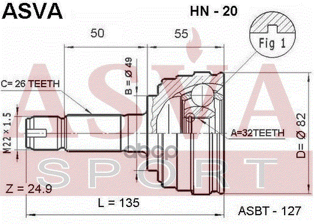 Купить запчасть HN20 ШРУС НАРУЖНЫЙ 32x49x26 с доставкой в Эль-Монте.