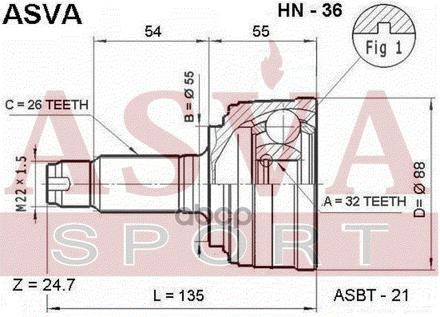 Купить запчасть HN36 ШРУС НАРУЖНЫЙ 32x55x26 с доставкой в Эль-Монте.