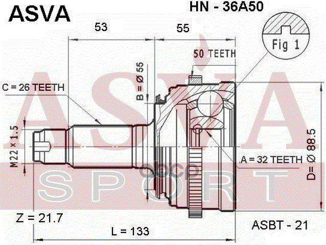 Купить запчасть HN36A50 ШРУС НАРУЖНЫЙ 32x55x26 с доставкой в Эль-Монте.