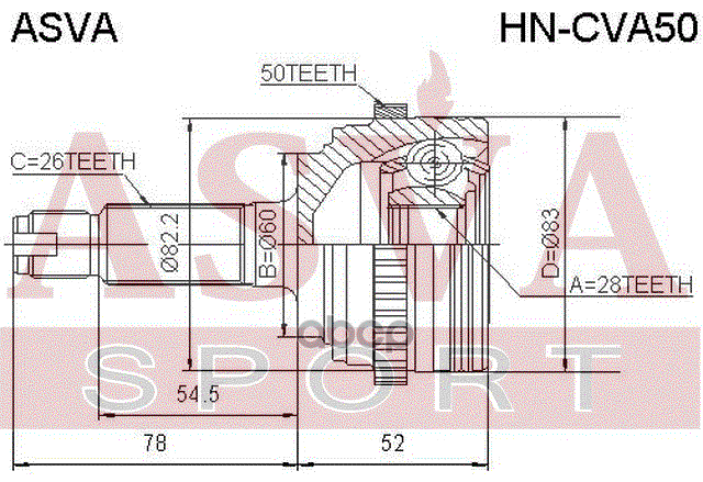 Купить запчасть HNCVA50 ШРУС НАРУЖНЫЙ 28x60x26 с доставкой в Эль-Монте.