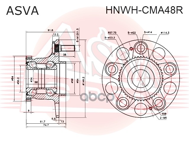 Бренд: ASVA, артикул: HNWHCMA48R, Подшипник задн. ступ. К-кт [ступица] HONDA Accord (CM/CN) 2,0-2,4L (04/03-05/08). |