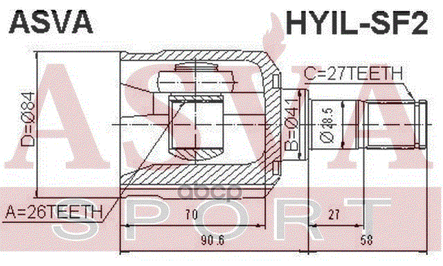 Купить запчасть HYILSF2 Шрус внутренний левый SANTA FE с доставкой в Эль-Монте.