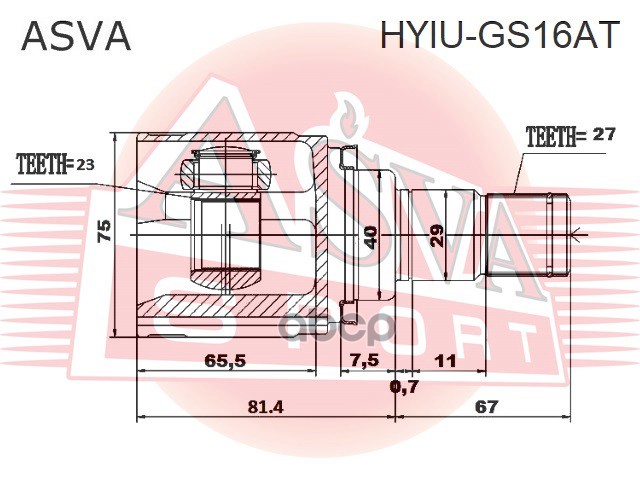 Бренд: ASVA, артикул: HYIUGS16AT, ШРУС внутренний 23x40x27 HYUNDAI CRETA 2017 < 1600 AT 4WD. |